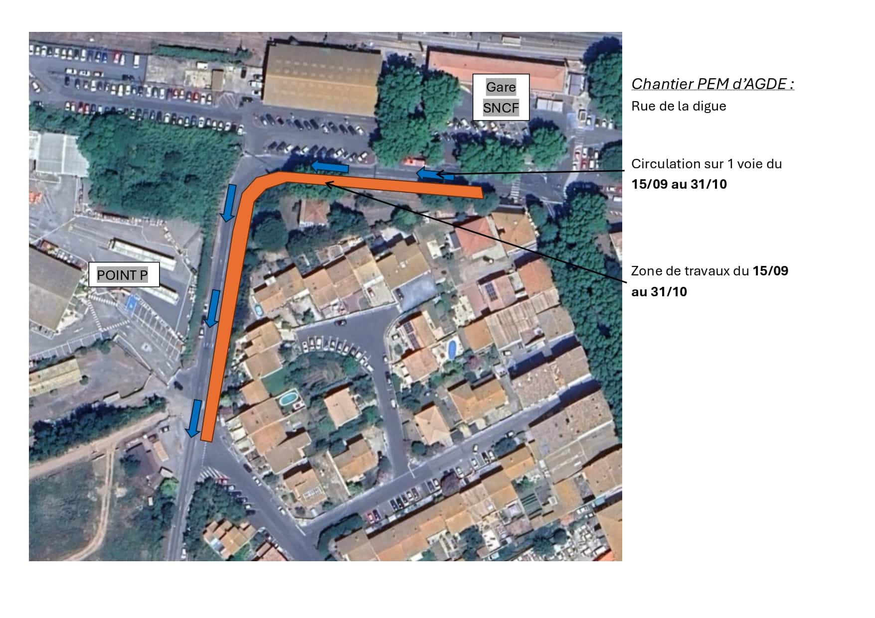 Du lundi 15/09 jusqu’au 31/10 : dévoiement de réseaux rue de la Digue.